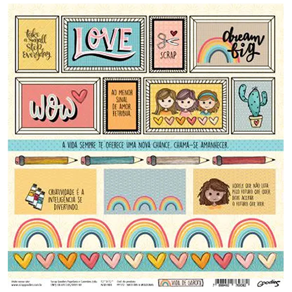 Papel Scrap – Linha Vida de garota – PP172 – Arco-Íris & Molduras